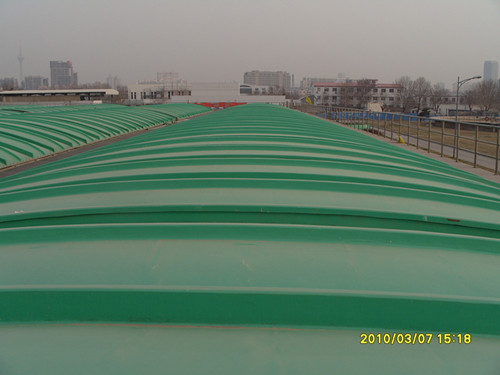 據了解,該產品在技術創新上,通過研發新型固化配方及工藝,開發的罩體活動蓋板、觀察窗、檢修孔、取樣孔等,不僅使產品強度大、耐腐蝕、耐燃性好。進一步滿足了超大跨度池體的需要,還方便了用戶采樣、維修。目前,該企業已生產并為用戶安裝了最大跨度達36米,長度50多米的玻璃鋼廢氣回收集氣罩,并配套開發出玻璃鋼復合材料凈化塔、通氣(風)管道、離心風機及生物除臭等設備,市場的前景十分廣闊。