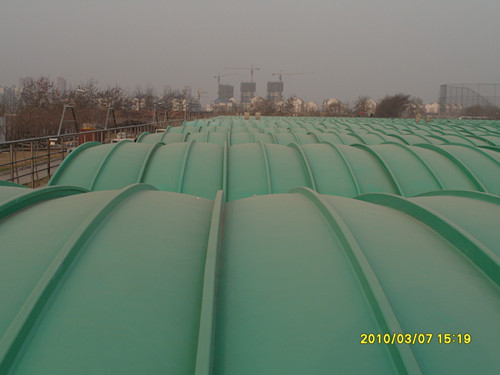 據了解,該產品在技術創新上,通過研發新型固化配方及工藝,開發的罩體活動蓋板、觀察窗、檢修孔、取樣孔等,不僅使產品強度大、耐腐蝕、耐燃性好。進一步滿足了超大跨度池體的需要,還方便了用戶采樣、維修。目前,該企業已生產并為用戶安裝了最大跨度達36米,長度50多米的玻璃鋼廢氣回收集氣罩,并配套開發出玻璃鋼復合材料凈化塔、通氣(風)管道、離心風機及生物除臭等設備,市場的前景十分廣闊。